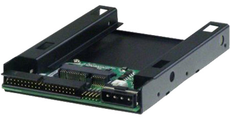 Meine Lösung hier ist eine seit Jahren problemlos funktionierende 120 Gig OCZ Vertex 2, von der es neu längst nur noch Nachfolger gibt. Es werden aber sicher auch die meisten Anderen funktionieren. Interessanter ist da vielleicht sogar der Adapter. Ich habe diesen ACARD hier, der mir recht gut gefällt, weil er sich fast „wie eine normale Festplatte“ mit den originalen Anbauteilen, Schiene und Kühlkörper, verbauen lässt (wobei der Kühlkörper hier natürlich nicht wirklich vonnöten wäre).