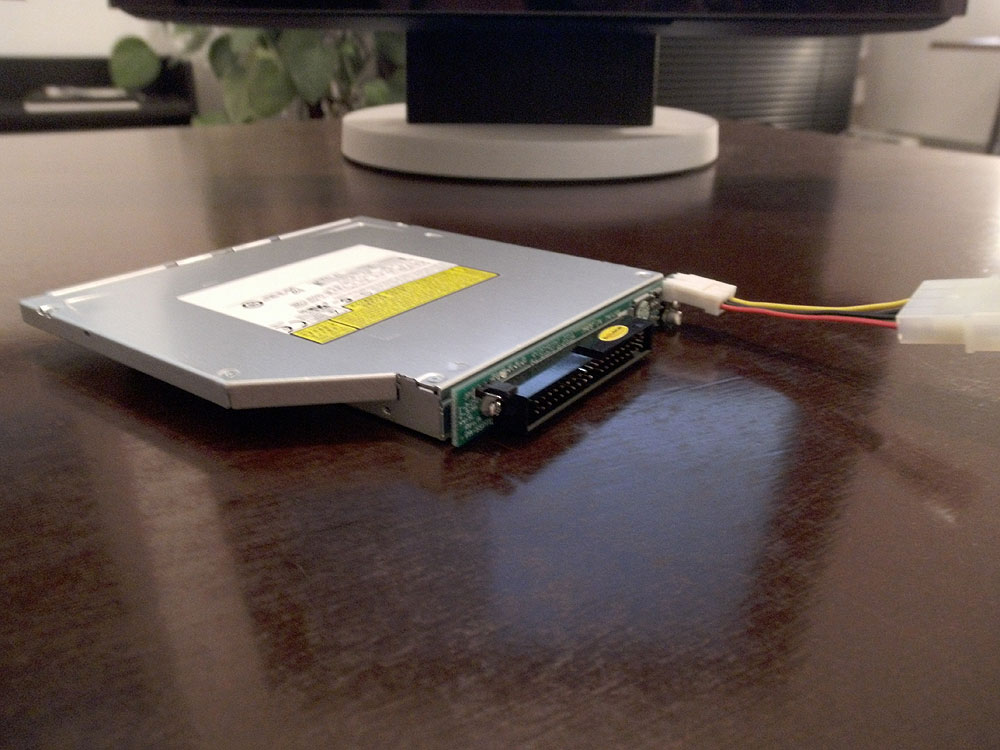Freilich kann man darüber diskutieren, ob man heute überhaupt noch ein optisches Laufwerk braucht. Aber beim Cube ist die Öffnung im Gehäuse nun mal vorhanden. Also wollte zumindest ich da auch was hinter haben. Außerdem fand ich gerade das Toaster-artige Be- und Entladen von Opticals immer einen der besonders „Hingucker“ des Würfels. Und extern verkabelter Wechselspeicher kommt für mich am Cube sowieso nicht infrage. Zumal zumindest die USB-Schnittstellen hierfür, selbst wenn sie nicht beide anderweitig belegt wären, alleine von der Geschwindigkeit her ausfallen würden.