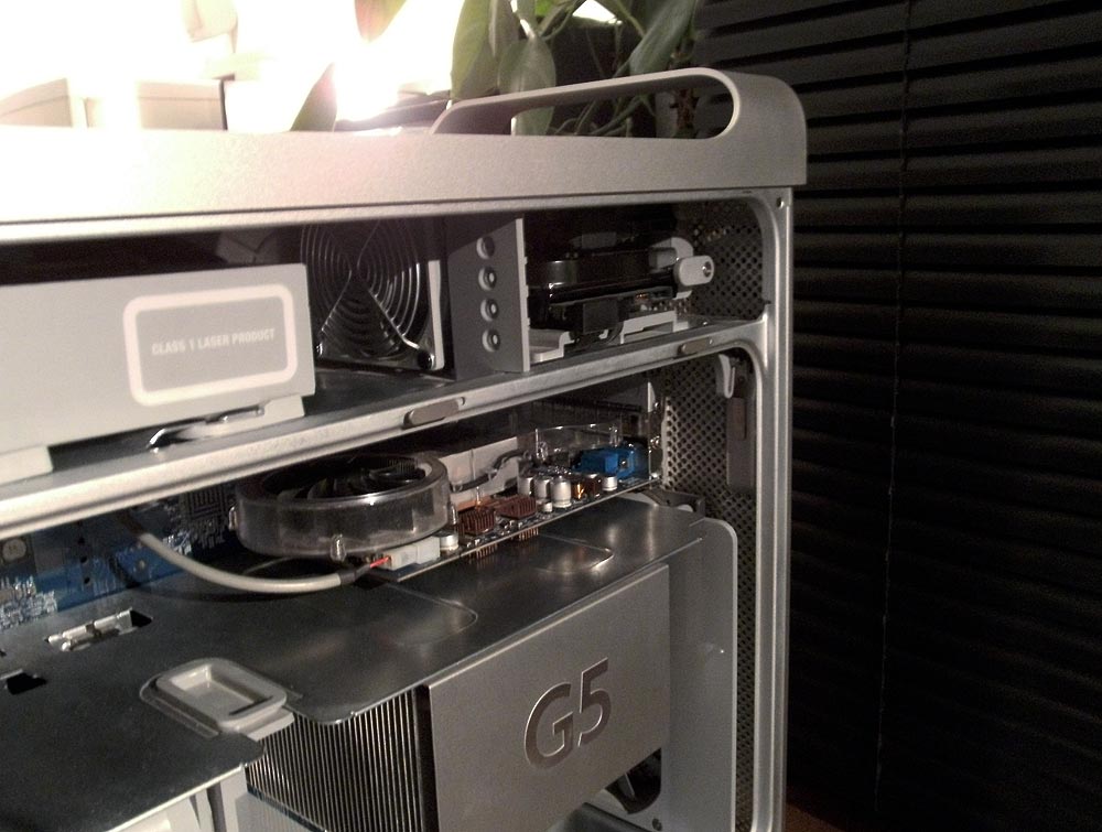 Das Bild ist insofern nicht ganz aktuell, als dass die Fernsehkarte im obersten PCI, aufgrund von Leo-Kompatibilitätsproblemen, einer anderen Fernseh-/Video-In-Lösung weichen musste. Da damit unter Leo nichteinmal Sleep funktioniert hat, habe ich sie gleich ganz ausgebaut, obwohl auch Tiger noch auf dem Rechner ist.