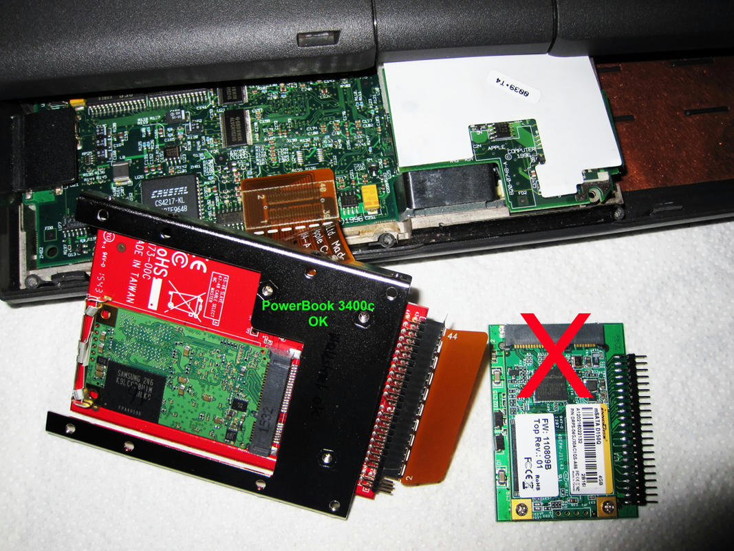 Die schlechte Nachricht zuerst: keine meiner mSATA SSDs (Crucial, Samsung, InnoDisk) haben einwandfrei mit dem PowerBook 1400c funktioniert.