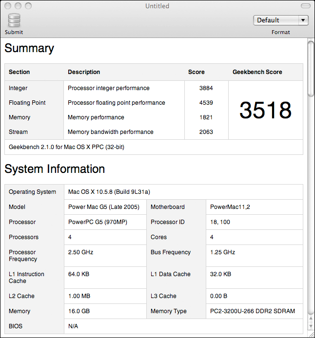Geekbench 2.1.11 for Mac OS X PPC (32-bit)